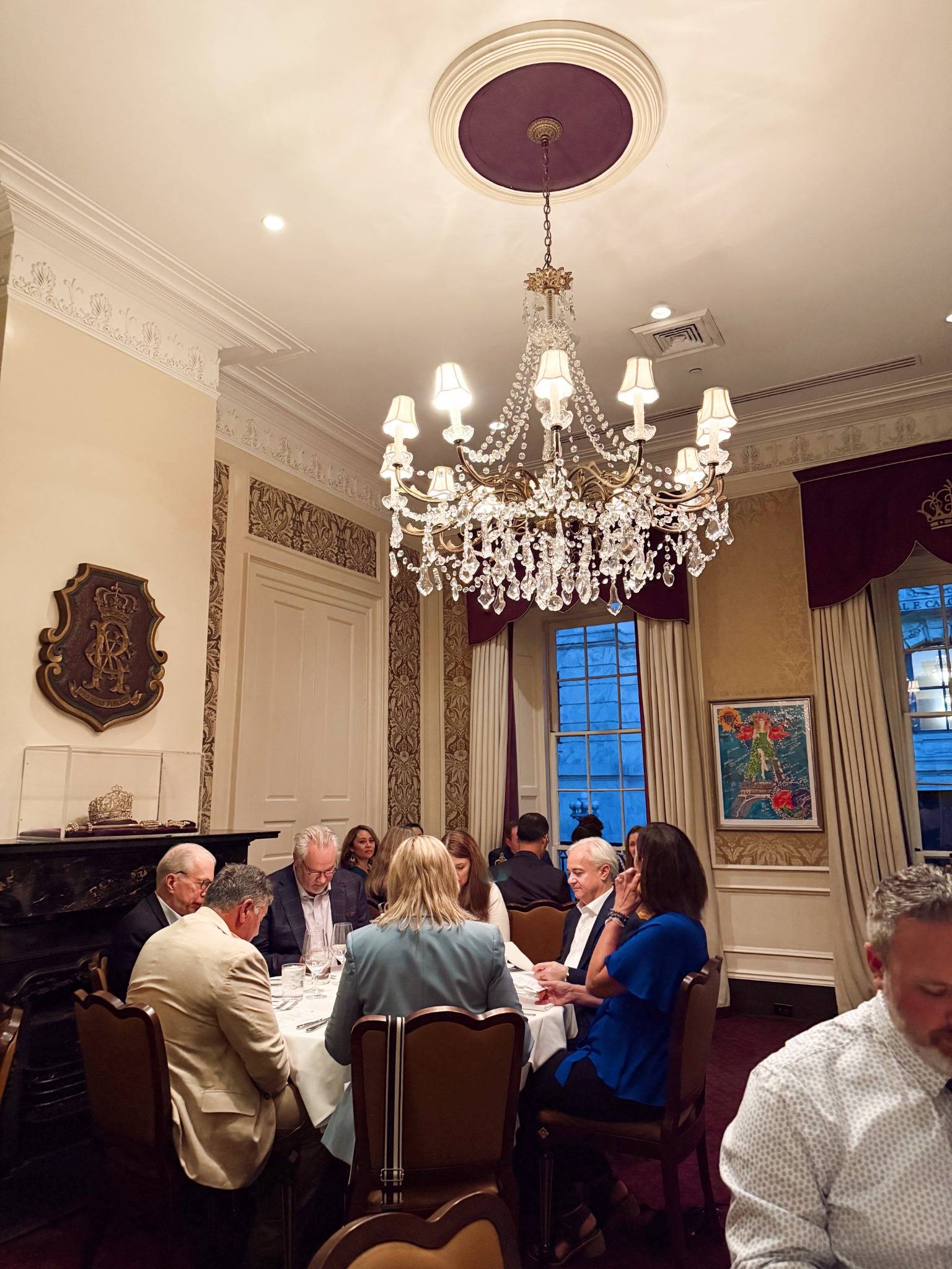 The event was guided by Brandon, our incredible host from the Brennan’s team, whose storytelling brought the restaurant’s history to life. Between sips and laughter, he shared tales of the Brennan family legacy and the century-old walls that have witnessed generations of celebration. Wandering through the intricately detailed private rooms, guests admired the authentic historic treasures, ornate chandeliers, and polished woodwork that gave the evening its sense of timeless intimacy.